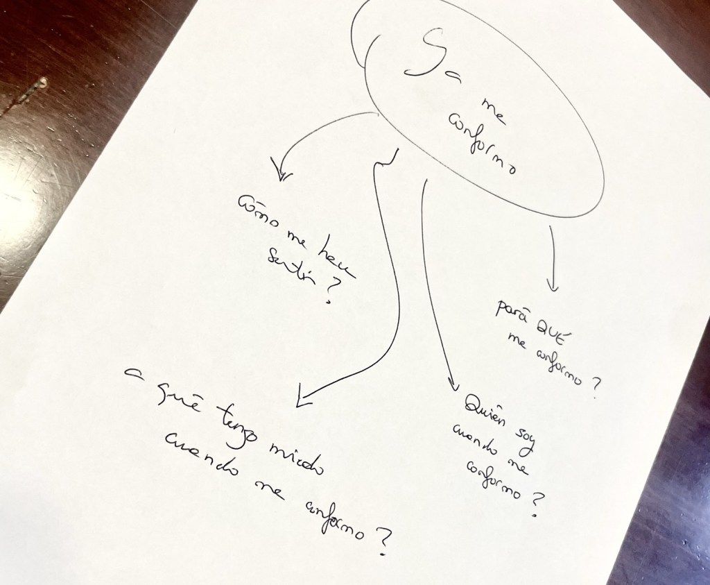 Me toca acompañar con cuidado y silencio. No empujar ni forzar. Abrir espacio para que quien habla pueda volver a sentir, aunque duela, aunque asuste. Porque a veces lo más valiente no es acostumbrarse, sino atreverse a des-acostumbrarse; mirar de frente lo que uno tuvo que callar para seguir adelante.